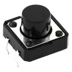 The 12mm Push Button Switch is a standard 12mm square momentary button. It features the large button head and good tactile feel. It ‘clicks’ really well. This button is great for user input on a PCB or a good, big reset button on a breadboard.
