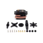 The 15kg Continuous Turn Servo w/ Feedback offers a 25T / 5.9 mm horn gear spline. It comes with copper gear and a core motor. It provides an operating voltage range between 4 – 8.4 V and a no-load speed of 50 RPM at 6 V.