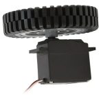 The 3.10″ Press Fit Wheel (pair) makes it easy to create compact robot platforms. One side of the wheel has a press-fit 5.5mm bore, and the other is broached for a 25T spline. The wheels have actual rubber tires that provide great traction.