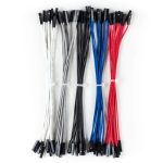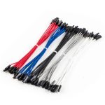 The 6″ F/F Premium Jumper Wires (40pk) have female connectors on both ends. The connectors fit nicely with the headers on your Arduino and Arduino compatible board as well as any standard 0.025″ square pin header.