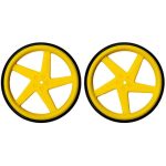 The 63mm Wheel for TT Motor – Yellow (2pk) includes a pair of injection-molded ABS wheels. They fit directly onto the geared hobby motors TT-style shaft and can be screw fixed firmly in place. The ABS used is very lightweight and has excellent mechanical qualities. As such, the wheels are extremely durable and very difficult to break.