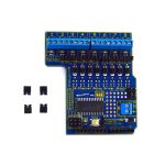 The 8-Channel Relay Driver Shield drives up to 8 relays from your Arduino using just 2 I/O pins. It communicates with your board using I2C, so you can even stack several shields together to drive 16, 24, or more outputs. Includes back-EMF protection and works with a wide range of relays. Perfect for home automation projects. Maximum output current per channel is 115mA, which is plenty to drive common relays. For larger loads you can use this shield to control FETs or solid state switches.