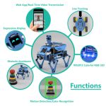 This kit provides multiple features like obstacle avoidance, line tracking, tracking code, real-time video transmission, remote control, emoticon display, etc.