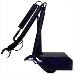 This 6 degree of freedom arm uses linear actuators and rotary servos to provide an operation envelope of over 7 ft in diameter. Sealed ball bearings provide precision movement at each joint. The lower 4 joints use absolute encoders for precise, linear control. Typical current draw at full capacity is approximately 7 amps. Rotation speed of base joint is 60 degrees / second. Wrist rotates 240 degrees in 2.3 seconds. Gripper moves from fully open to fully closed in less than 1 second. Reverse power protection and over-current protection is built into to the unit. A power switch with green LED “on” state indication is located on the electronics enclosure.