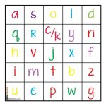 The Grid is split up into 5″ Squares, aligning with the default move commands of the Code & Go Robotics system. Alphabet letters are scattered throughout the grid.