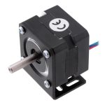 The Aluminum L-Bracket for NEMA 14 Stepper Motors is a black anodized aluminum bracket that lets you securely mount typical NEMA 14-size stepper motors to your project. The bracket features several slots and holes for a variety of mounting solutions, and four M3×5mm screws are included for securing the motor to the bracket.