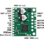 The AMIS-30543 Stepper Motor Driver Carrier is a breakout board for ON Semiconductor’s AMIS-30543 micro stepping bipolar stepper motor driver, which features SPI-adjustable current limiting, 11 step modes (from full-step through 1/128-step), back-EMF feedback that can be used for stall detection or optional closed-loop control, and over-current and over-temperature protection.Â