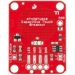 The AT42QT1010 Capacitive Touch Breakout offers a single capacitive touch button with easy-to-use digital I/O pins. If you need to add user input without using a button, then a capacitive touch interface might be the answer. The AT42QT1010 is a dedicated, single-button capacitive sense chip. The chip handles monitoring a conductive area for touch. As long as a touch (e.g. from a finger) is detected, the AT42QT1010 keeps the output line high. Otherwise, the line is kept low. You just need to provide a power source (1.8V – 5V) and ground for the AT42QT1010 to work. Additionally, a PAD pin is available if you would like to create your own external electrode. The AT42QT1010 is designed specifically for human interfaces, like control panels, appliances, toys, lighting controls, or anywhere a mechanical switch or button may be found.