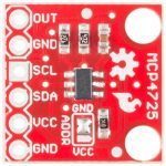 The Breakout Board for MCP4725 I2C DAC is an I2C controlled Digital-to-Analog converter (DAC). A DAC allows you to send analog signal, such as a sine wave, from a digital source, such as the I2C interface on the Arduino microcontroller. This version of the MCP4725 Breakout fixes a few issues with the board including the IC footprint, the I2C pinout, changes the overall board dimensions to better fit your projects, and a few more minor tweaks. This board breaks out each pin you will need to access and use the MCP4725 including GND and Signal OUT pins for connecting to an oscilloscope or any other device you need to hook up to the board.