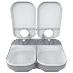 Just set the timer on each lid to open at the required time, up to 48 hours later. Lid-link clip ensures the simultaneous opening of both lids for feeding two cats. Two large food bowls each hold 400 g (14 oz.) of wet food.