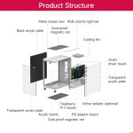This CUBE Pi protective case is specially designed for Raspberry Pi 5, mainly composed of a metal chassis box body with three highly transparent acrylic side plates. It is sturdy and durable, while offering a 270° panoramic view of the internal components. Built-in RGB light bar and blue light cooling fan, combined with the active radiator and dual cooling ducts at the top and bottom. Not only ensure excellent heat dissipation, but also maintain the silent operating environment of the device. In addition, the case has reserved enough space to support the installation of M.2 SSD, allowing users to easily expand storage capacity. To ensure the long-term stability and cleanliness of the system, we also provide two dust-proof magnetic nets to effectively block dust intrusion and provide all-round hardware protection.