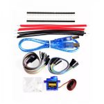 This kit provides a Mini Servo and 4 Gear motors. It also includes an L298N Motor Driver and the UNO328 controller board. Four 65 mm wheels as well as fixings complete this kit.