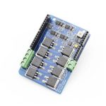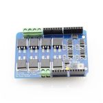 It is made up of 8 N-channel MOSFET IRF3205S and 4 pcs of half bridge motor controller IR2104, to build 2 H-bridge. With this shield and the Arduino board, users can control and drive motors with a max current 8A@ 22V. The universal 7.4~11.1V lipo battery that is popularly used in the remote car and model airplane can be applied as well.