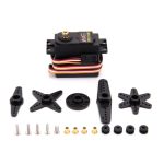 The FeeTech Digital Servo 15kg/cm FB5116M w/ Feedback offers a Nylon & Fiberglass case. It features 2 ball bearings and has an operating voltage range of 4.8 – 6 V.