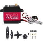 The Hiwonder LD 20MG Full Metal Gear Digital Servo w/ 20kg High Torque Aluminium Caseis a powerful and reliable servo for robotic projects and RC models. This servo is made of high quality materials and offers 20kg of torque and a metal gear for maximum durability. It has a wide range of applications and is perfect for robotics, RC cars, boats, and aircraft. The servo is easy to install and use, and comes with an aluminium case for added protection. With its high torque and long lasting construction, this servo is an ideal choice for any project.
