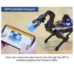 PuppyPi Pro can be equipped with a mini robot arm on its back. Using vision to detect target, it can pick up and transport small objects.