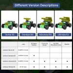 - Features include an aluminum alloy frame, CNC steering, 100mm wheels, Hall encoder motors, and a 6000mAh battery