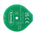 The Kitronik Round USB RGB LED Lamp is a board designed for low-power lighting, such as mood lamps or accent lights. Its discreet size and circular design make it an ideal option for creative enclosure designs. The PCB measures 36mm in diameter and features a single M3 mounting hole in the center. The USB connector projects approximately 2mm from the end of the PCB, and the underside is flat for easy mounting.