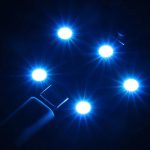 The five full-color RGB LEDs are controlled by a pre-programmed IC with four patterns, which can be selected by pressing the button. An additional off position is available after the fourth pattern.