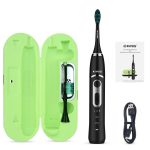 KIVOS Sonic Electric Rechargeable Toothbrush, Perfect For Adults Improve Oral Health Comfortable Cleaning with 2 DuPont Brush Heads – Black