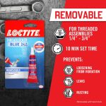 The Loctite Threadlocker (Blue 242, 6mL) is a removable adhesive formulated for threaded assemblies. It effectively prevents loosening due to vibration, as well as leaks and rusting.