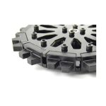 The MTS 12T Sprocket (6mm Hub) includes a 6mm diameter hub. The sprocket is compatible with the Lynxmotion modular tracks (2” and 3” wide tracks available). The center hub mounting pattern is intended to be used with Lynxmotion universal hubs (6mm hub included). Black polycarbonate teeth / lexan side wall. Single row of teeth.