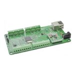 The Numato 32 channel Ethernet GPIO Module w/ Analog Inputs features 32 TTL (3.3V) compatible GPIOs, 14 analog input channels (multiplexed with GPIOs), 10-bit analog input resolution, and all GPIOs can be individually configured as input or output. It can be controlled by using a simple web interface or Telnet, without requiring any TCP/IP protocol knowledge. This module also has a 2, 25, and 8mA source/sink capacity (depending on the IOs) and a unique MAC address. Additionally, it has a reset jumper that resets the board to factory defaults, a password-protected web console and Telnet communication interface, and LED indication for power.