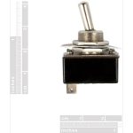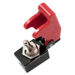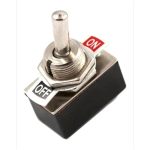 The On Off Toggle Switch is a heavy duty SPST toggle switch – your basic on/off toggle. It is rated for 2A at 250V or 4A at 125V. It includes a face plate and two threaded nuts for mounting. It works great with the missile switch cover. Maximum material thickness: 0.25″ (~6mm).