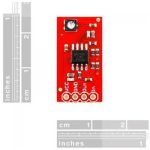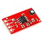 The SFE OpAmp Breakout is a simple Op Amp breakout board, set up as a 2-stage amplifier with a gain of 100 (gain of 10 for each stage). The on-board trim pot sets the signal level between the stages, not the feedback path. The bandwidth is set to 15.9kHz by a pair of feedback capacitors, or over 100kHz with the caps removed. The LMV358 opamp can source up to 160mA and works well as a low impedance driver/buffer. This Breakout replaces the BOB-08704.
