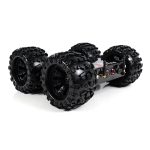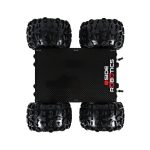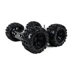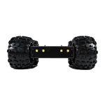 The platform offers exceptional control thanks to its skid steering and larger tires. Enlarged wheels compared to regular 4WD platform provide more stability and higher payload capacity, further enhancing its versatility. This setup is perfectly paired with four powerful 313rpm planetary gear motors, making it ready to conquer any terrain. The wheels are directly mounted and secured onto the motor shaft adapter. The platform chassis is designed for two-sided driving, with a ground clearance of 2 ¼ inches on the bottom and 2 inches on the top. This clearance ensures the body maintains a safe distance from the ground on both sides.