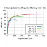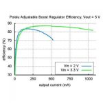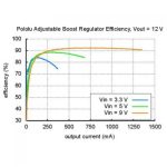 It is a very flexible switching regulator (also called a switched-mode power supply, SMPS, or DC-to-DC converter) that can generate voltages higher than its input voltage. Manufacturer also offers another adjustable range of approximately 4V to 25V. The output voltage can be set using the trimmer potentiometer in the upper-right corner of the board. The input voltage range is 1.5V to 16V (the input voltage should be kept below the output voltage). The integrated 2A switch allows for output currents high enough to drive small motors, as in Pololu’s 3pi robot, and allows large voltage gains, such as obtaining 24V from two NiMH or NiCd cells. This regulator features a typical efficiency of 80-90% when doubling voltage and with 100-500 mA output.