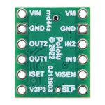 The product’s features include an H-bridge motor driver, a motor supply voltage range of 1.8 to 22 V, a logic supply voltage range of 1.8 to 4.9 V, and an output current of up to 1.7 A continuous. The current control limits the peak current to 2.5 A by default. It also offers under-voltage lockout and protection against over-current and over-temperature. The carrier board provides reverse-voltage protection up to 20 V. The device’s compact size (0.5 x 0.6 inch) adds to its appeal.
