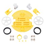 The Pololu Romi Chassis Kit – Yellow is a versatile foundation for developing mobile robots. This comprehensive kit includes essential mechanical components such as two motors, two white wheels, a yellow ball caster, and battery contacts, all designed for seamless assembly. The Romi chassis features a differential-drive mobile robot platform with a 6.5-inch (165 mm) diameter and accommodates six AA batteries (not included) in its integrated holder. The drive wheels are strategically positioned on the circular base plate’s diameter, enabling precise turns and in-place spinning, while a large, fixed ball caster at the rear ensures smooth movement. The chassis is equipped with 70×8mm Pololu wheels and Mini Plastic Gearmotors with extended backshafts, supporting the addition of quadrature encoders for position feedback. An abundance of general-purpose mounting holes and slots are available for attaching various electronics, such as microcontrollers, motor drivers, and sensors. The plastic components, available in six colors, offer customization options for replacement parts or unique color combinations.