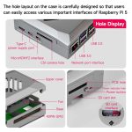 This ABS silver case is designed for the Raspberry Pi 5 development board. It consists of a base and an upper cover, and Yahboom provide a large cooling fan for free. The top of the case is designed with openings to help the fan dissipate hot air. The precise hole positioning on the side allows all ports, slots and buttons to be perfectly aligned with the Raspberry Pi 5, ensuring the normal operation of the device. No need to worry about the case affecting the functionality.
