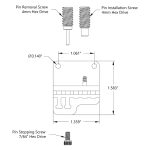 The ServoCity 0.250″ Pitch Chain Tool facilitates the customization of 0.250” (#25) chain lengths with ease and precision. This tool is engineered to accurately push pins out and back in, allowing for the creation of continuous chain loops without the necessity of a master link. Its design ensures proper support of the chain links, preventing any binding that might occur due to the pressure exerted during pin removal or installation.
