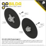 - 1x ServoCity #25 Pitch Acetal Hub-Mount Sprocket (14mm Bore, 62 Tooth)