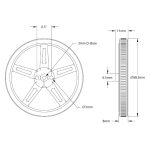 The ServoCity 3602 Series Press-Fit Wheel (3mm D-Bore, 70mm Diameter) – 2 Pack features a robust plastic hub and a silicon tread, designed for optimal performance and durability. Each wheel weighs 11 grams, making them lightweight and efficient for various applications.