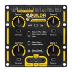 The ServoCity 4 Channel Servo Recorder is an advanced device designed to record and playback the movements of up to four servos, with a customizable recording duration of up to 26 minutes. This recorder offers the ability to fine-tune playback, allowing users to determine when and how servos return to their original positions. Each channel can be adjusted for a specific range of motion and can be set for reversed movement relative to the control knob’s rotation. This makes the Servo Recorder an ideal solution for achieving precise, repeated movements in applications such as animatronics, robotics, and pan and tilt systems. The device is equipped with four servo ports, enabling control over multiple servos simultaneously. It operates on a DC input voltage ranging from 5 to 15 volts, with an XT30 connector as the primary power input. The Servo Recorder simplifies the process of recording and playback; users can easily switch between recording and playback modes using the provided controls. The device also offers various playback and position return options, allowing customization of the method and speed at which servos return to their initial positions. Additionally, each servo’s range of motion can be customized without the need for a computer, providing flexibility in programming the endpoints of each servo channel. The Servo Recorder can be securely mounted to builds using thru-holes compatible with the goBILDA® pattern, facilitating easy installation. Note: Ensure only one power input is used at a time to avoid damage.