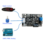 - Multi-interface: PWM/directional, PWM bi-directional, analog/directional, analog bi-directional, UART, PPM signal (independent or mixed)