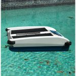 The water passes through a fine mesh filter to remove bugs and dust, and leave your pool clean, especially with its on-board chlorine tray that holds two 3-inch trichlor tablets, allowing the Solar-Breeze NX2 to sanitize your pool as it goes. This smart robot is like a “roomba” for your pool, taking care of dirty pools at the source: the top.