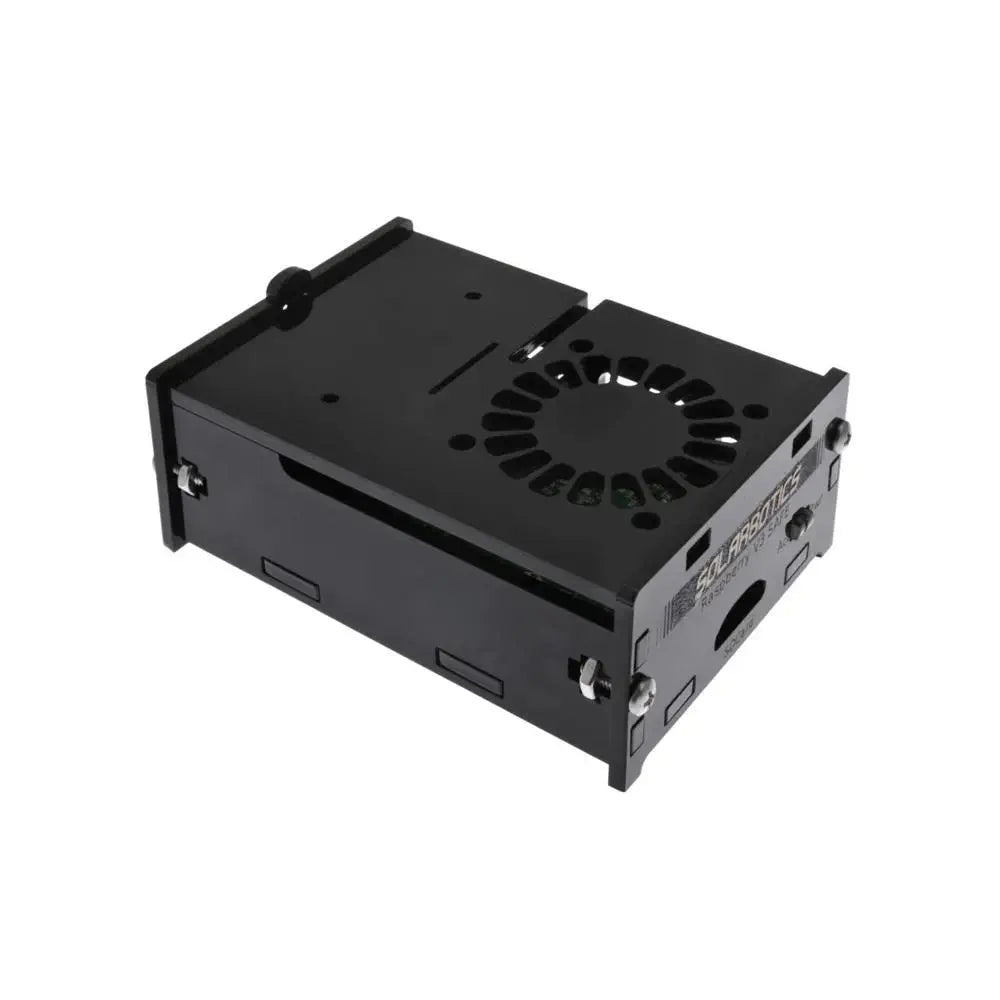 The Solarbotics Raspberry Pi S.A.F.E. for V3 is a useful, simple acrylic enclosure kit designed for your Pi V3. It offers Lid mounts for a 40mm Fan and the RaspPi camera enclosure. Top-slot access for both CSI (camera) and DSI (display) ribbon cables. 3mm Black Acrylic construction with 4-40 nuts/bolts.