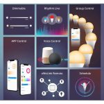 In the LAN, your smartphone MIC will recognize the music and up to 10 bulbs can change the colors with music rhythm, integrating the music into lighting, and make you feel it is an immersive corner.