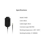 The SONOFF THS01 Temp & Humi Sensor offers a comprehensive monitoring range, measuring temperatures from -40℃ to +85℃ and humidity from 0 to 100%RH. It features an upgraded RJ9 4P4C connector, ensuring a stable and reliable connection with hot-plugging capability. This sensor is compatible with TH Elite and TH Origin devices, providing seamless integration for enhanced environmental monitoring.