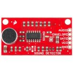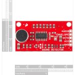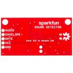The Sound Detector – LMV324 is a small and very easy to use audio sensing board with three different outputs. The sound detector not only provides an audio output, but also a binary indication of the presence of sound, and an analog representation of its amplitude. The 3 outputs are simultaneous and independent, so you can use as many or as few as you want at once. The envelope output allows you to easily read amplitude of sound by simply measuring the analog voltage. Gain can be adjusted with a through-hole resistor, to change the threshold of the binary (gate) output pin as well. Each of the three output signals is present on the .1″ header at the edge of the board. They are active simultaneously. If you aren’t using one in your particular application, simply leave that pin disconnected.