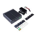 The T506S Mini AI Computer w/ Jetson Xavier NX, 5x PoE RJ45, 128GB SSD, 4x USB 3.0, RS232/485 is an advanced edge AI platform equipped with the Jetson Xavier NX processor. This device is designed to facilitate intelligent industrial applications and autonomous machinery. The unit is encased in a fanless aluminum alloy enclosure with an IP55 grade, ensuring durability and reliability in various environments. It is capable of operating on a wide voltage range of 12-36 V.