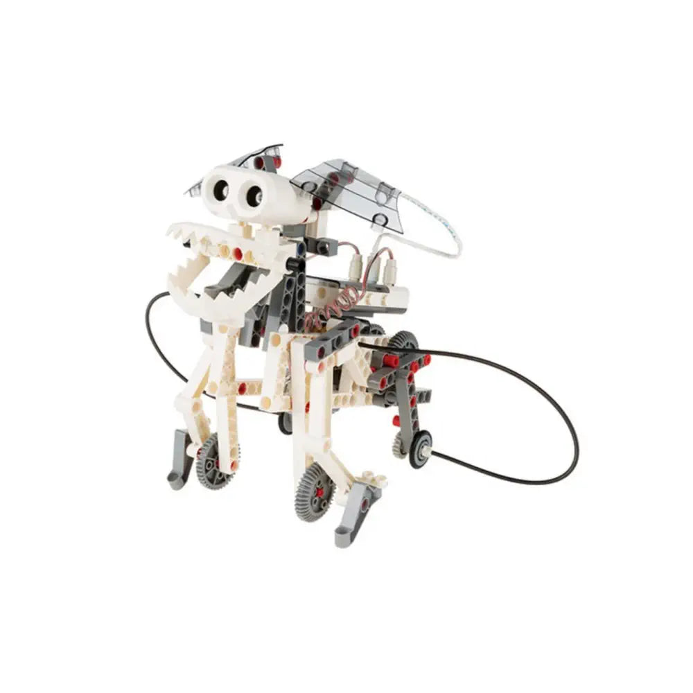 Build a humanoid robot that walks forward on two legs and pivots to avoid obstacles in its path. An awesome stag beetle model moves backwards or forwards in response to an obstacle, and opens and closes its pincers. Construct a funny crocodile model that wags its tail if no object is in sight, but then opens its giant jaws when an object approaches. Using an additional smartphone and tablet, you can even hack together a cute little spy-bot that roams around and streams video back to the tablet screen. A cool dual-rotor drone model rotates its rotor blades 90 degrees. You can also assemble other fun robots including a robo-dog and robo-dino. After you have learned how the technology works, you can build and program your own robots using the kit’s 230 building pieces.