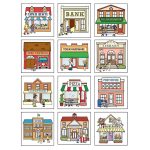 - 3D Community Construction Kit contains 15 boxes that may be assembled into “buildings” along with pre-printed stickers to apply to create 12 different community institutions.