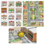 - It contains 15 boxes that may be assembled into “buildings” along with pre-printed stickers to apply to create 12 different community institutions.