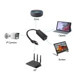 By default, it functions as a Micro USB PoE Splitter. However, with the addition of a Micro USB to USB-C adapter on the Micro USB port, it can also function as a USB C PoE splitter. This allows for seamless switching and stable data transfer.
