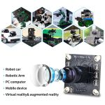 Using 1/2.7inch OV2710 image sensor and F2.8MM lens, the diagonal FOV can up to 148°, maximum frame rate can reach 120fps. The image has large distortion, it is suitable for application scenarios that require high image clarity, such as advanced AI recognition for robots and high-speed tracking projects.